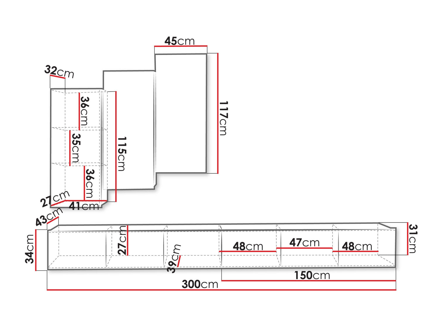 TV galda izmēri32 x 300 x 43 cm