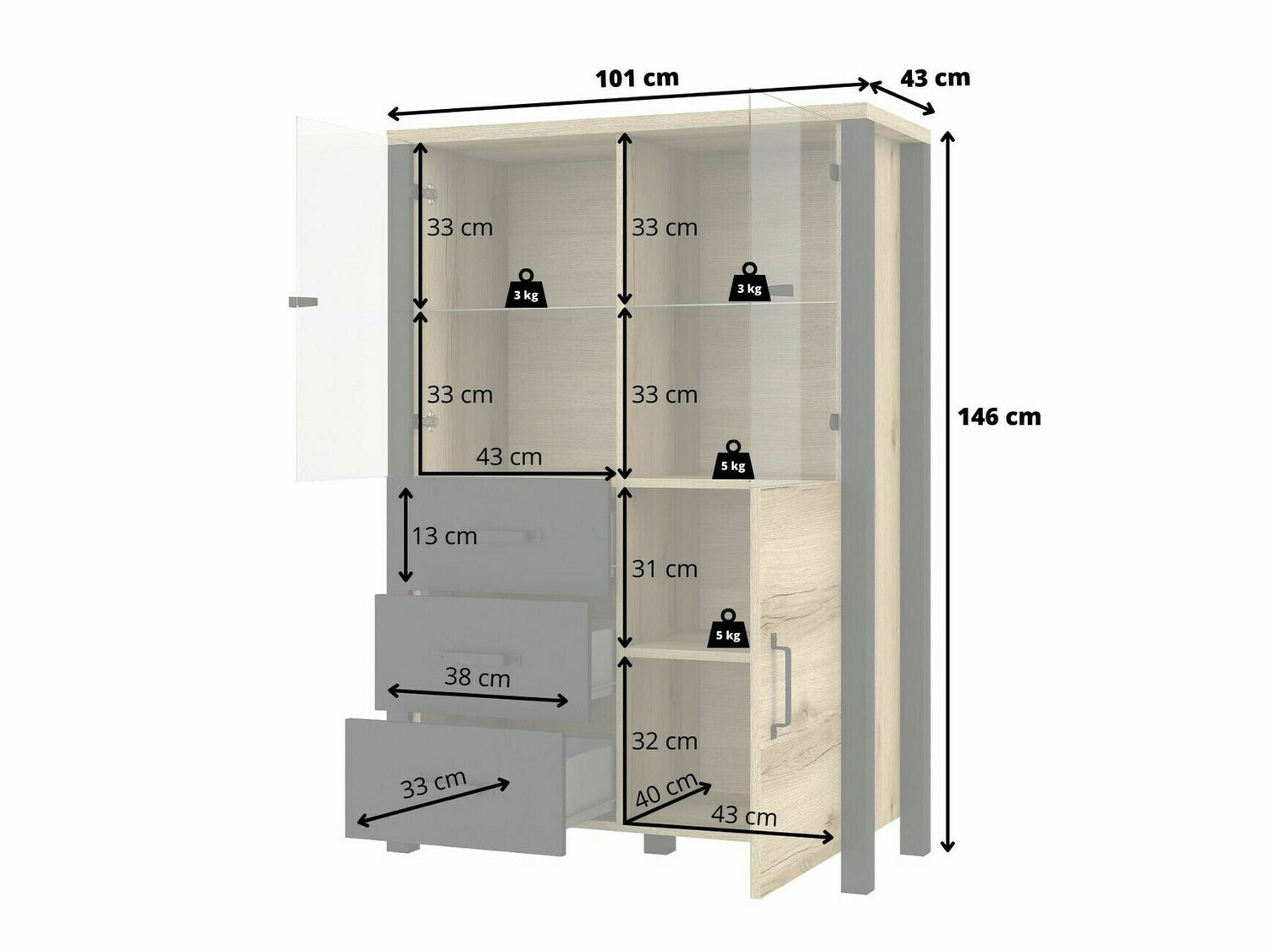 Dziļums43 cm