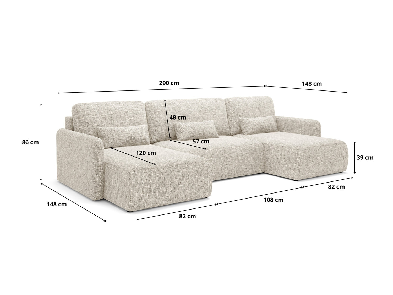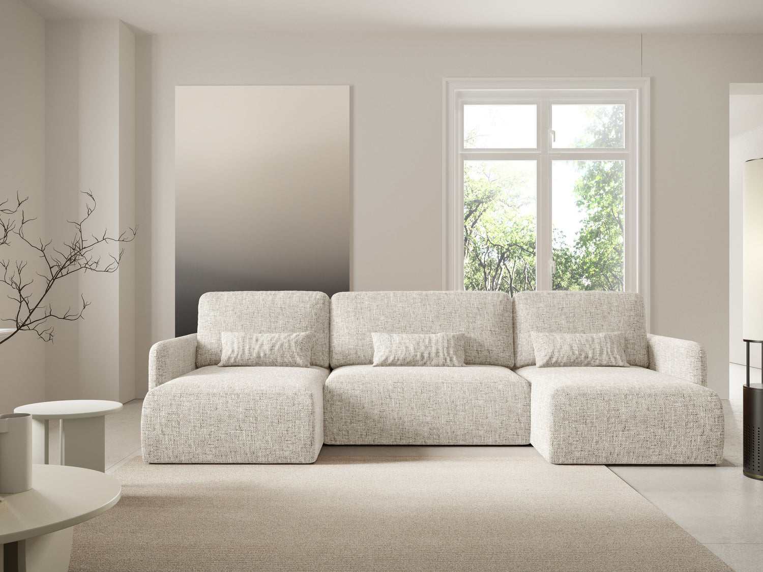 Ткань задней части мебели не отличается от ткани основной мебели. Вы можете разместить мебель с этой функцией в центре комнаты.