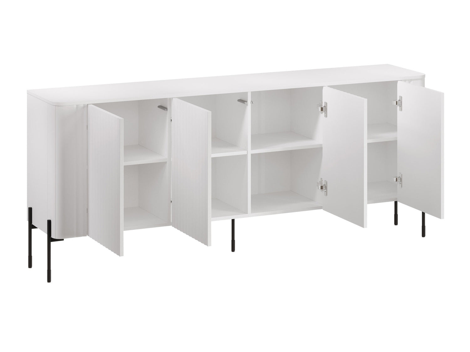 Мебель декорирована рифлёными рейками, которые чаще всего образуют вертикальные линии. Такой дизайн придаёт мебели не только элегантный, но и современный вид.