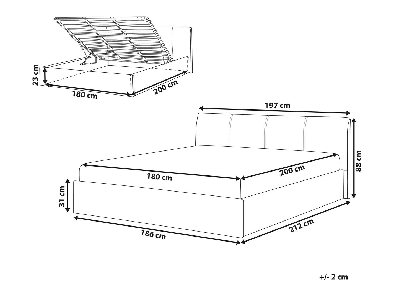 Размеры ящика для постельного белья230 x 1800 x 2000 мм