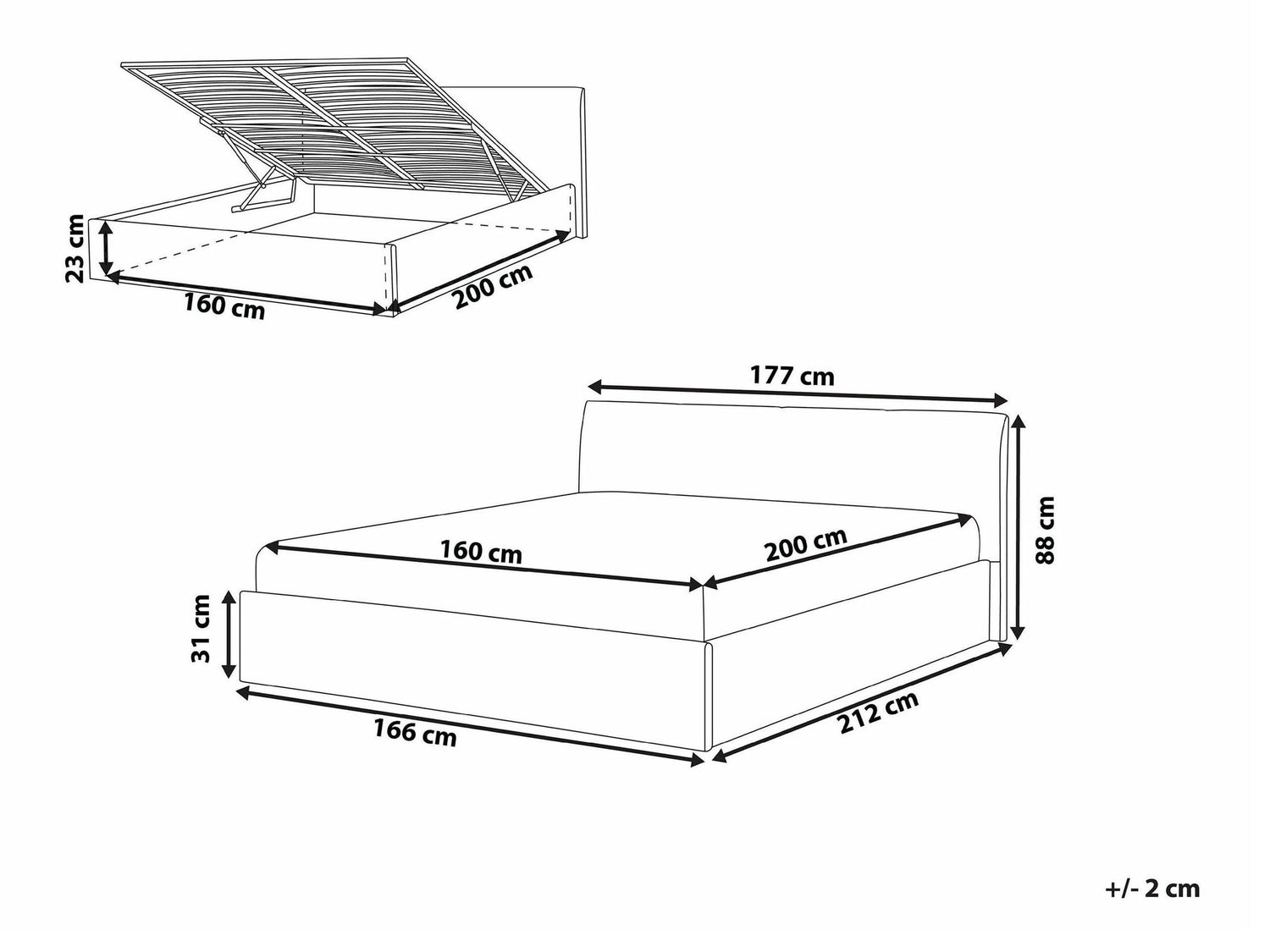 Размеры ящика для постельного белья230 x 1600 x 2000 мм