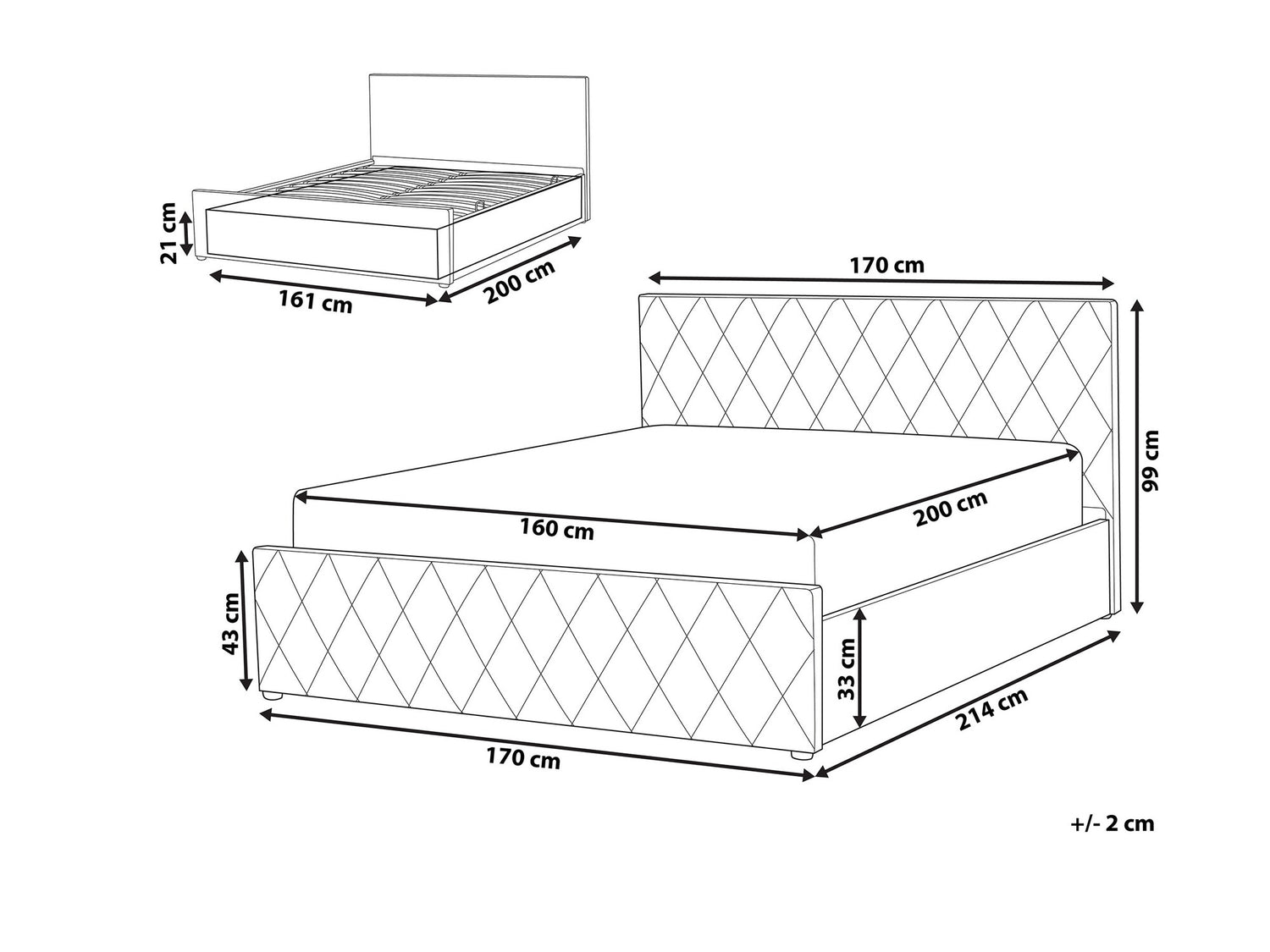 Размеры ящика для постельного белья210 x 2000 x 1610 мм
