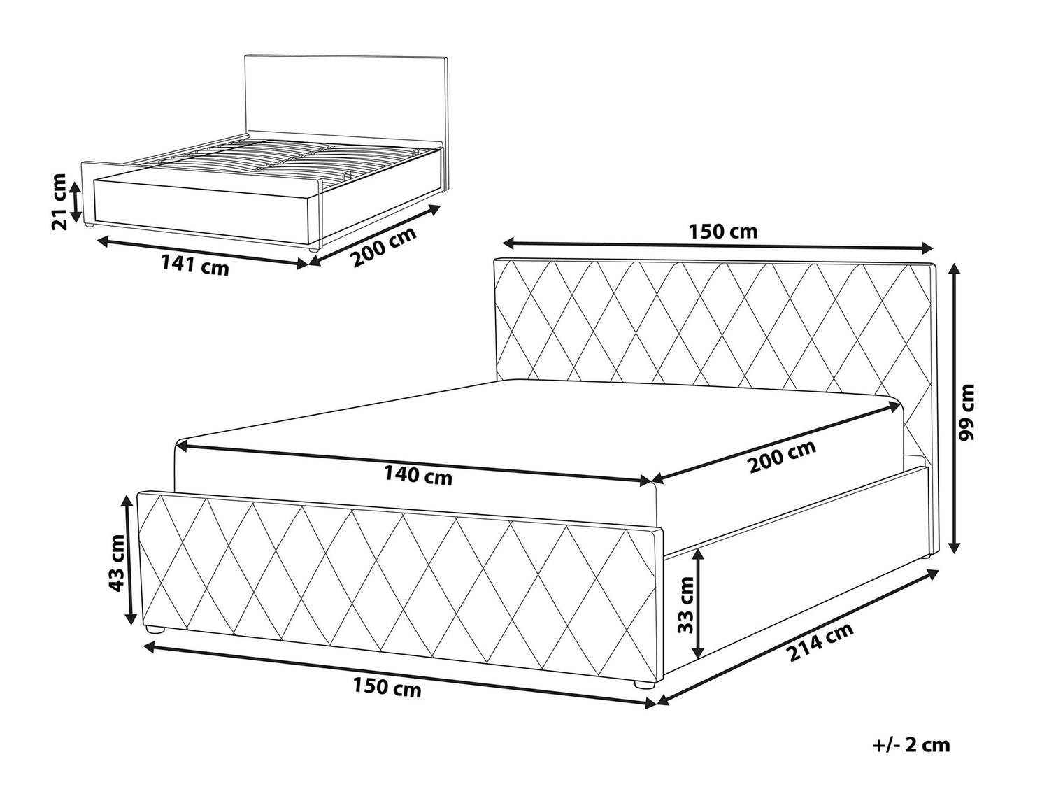 Размеры ящика для постельного белья210 x 2000 x 1410 мм