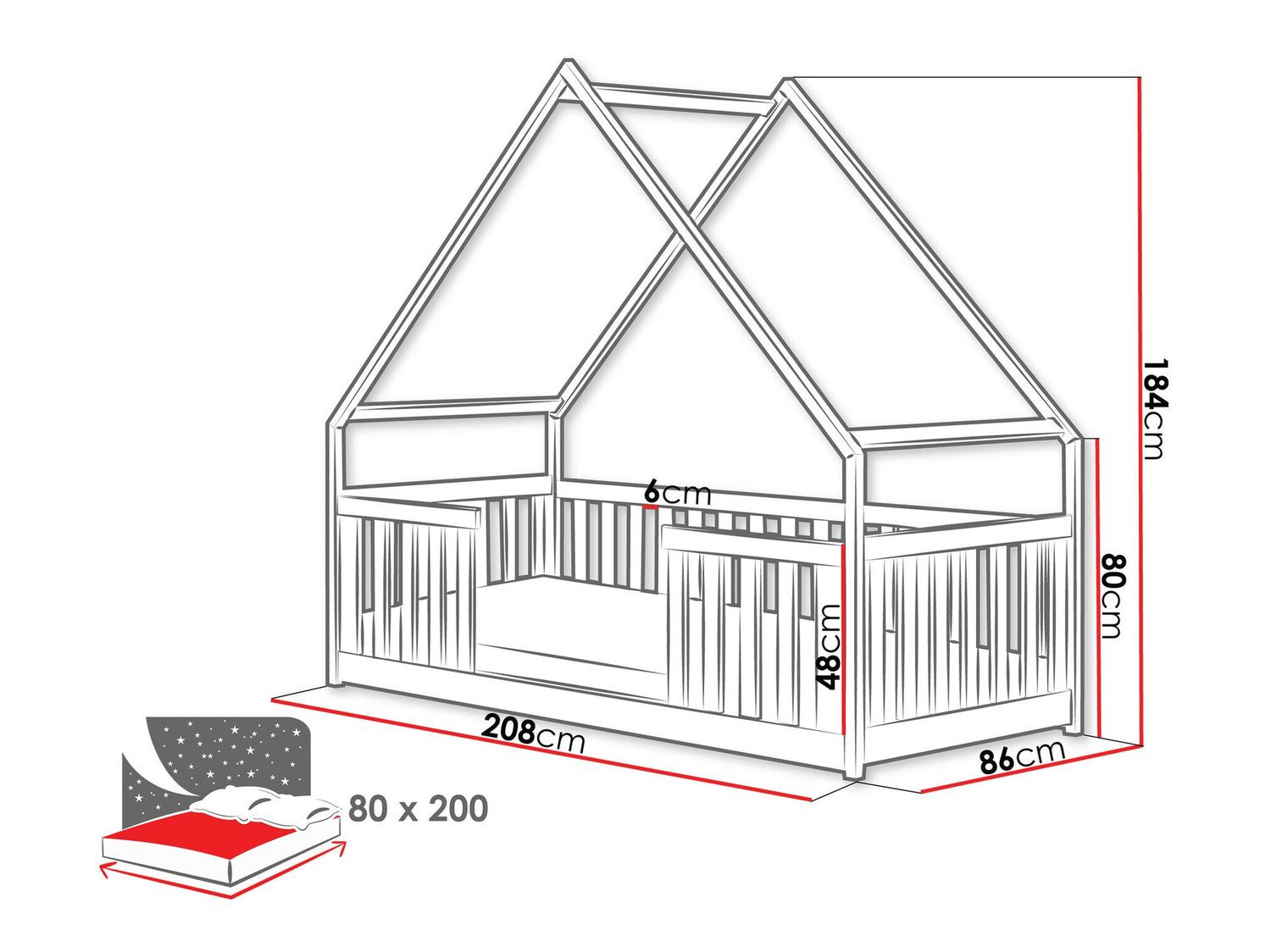 Применяется для матраса800 x 2000 мм