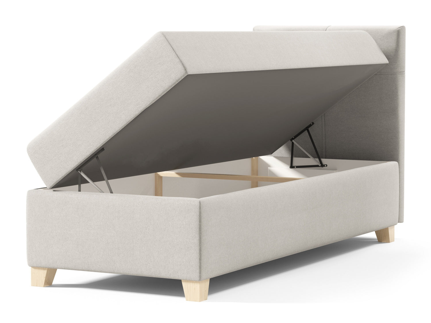 Принцип действия пружинного механизма основан на использовании пружин, которые принимают на себя часть нагрузки и облегчают подъем кровати. Пружины облегчают процесс подъёма, но часть нагрузки также несёт человек. Если необходимо уменьшить прочность механизма, достаточно снять пружины.