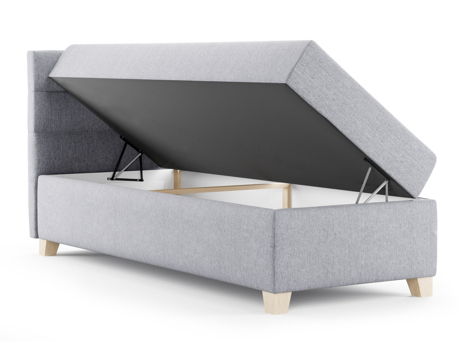 Принцип действия пружинного механизма основан на использовании пружин, которые принимают на себя часть нагрузки и облегчают подъем кровати. Пружины облегчают процесс подъёма, но часть нагрузки также несёт человек. Если необходимо уменьшить прочность механизма, достаточно снять пружины.