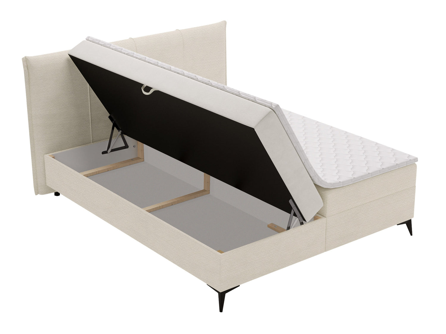 Принцип действия пружинного механизма основан на использовании пружин, которые принимают на себя часть нагрузки и облегчают подъем кровати. Пружины облегчают процесс подъёма, но часть нагрузки также несёт человек. Если необходимо уменьшить прочность механизма, достаточно снять пружины.