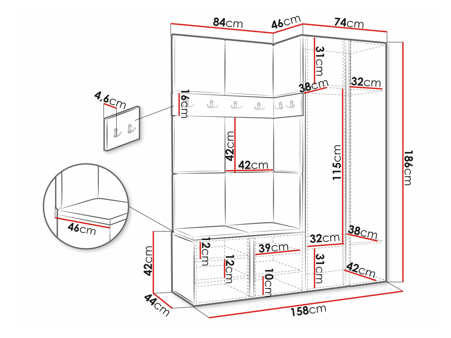 Размеры шкафа1860 x 740 x 460 мм