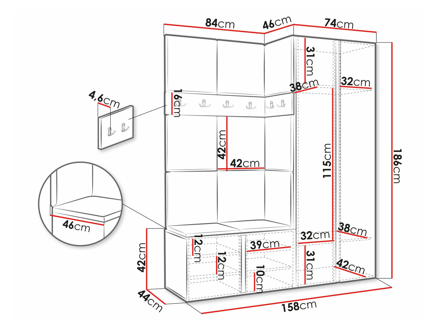 Размеры шкафа1860 x 740 x 460 мм