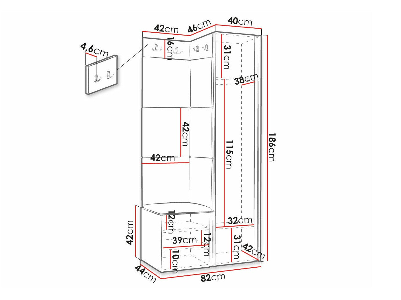 Размеры вешалки160 x 420 x 46; 160 x 460 x 46 мм