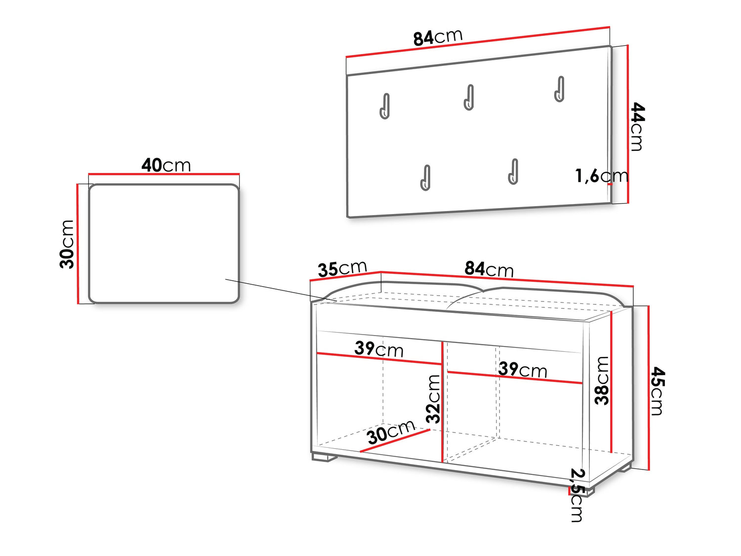 • Размеры вешалки