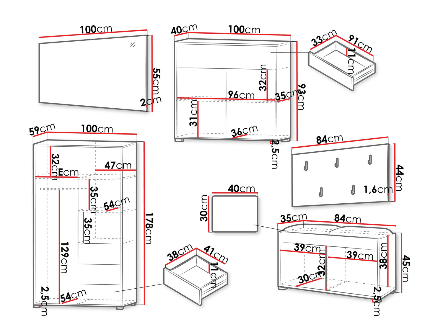 • Размеры шкафа