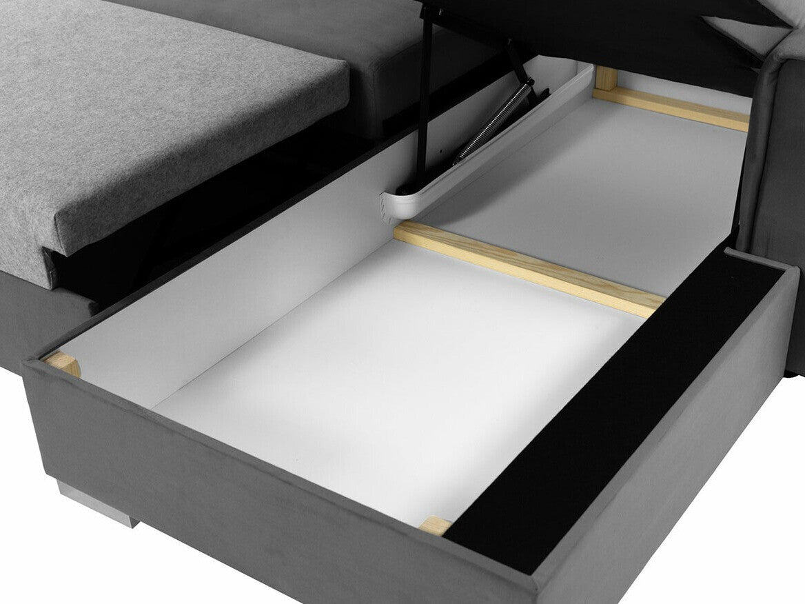 Это простое и удобное решение, которое позволит без особых усилий трансформировать мебель. Выдвижной ящик под сиденьем невидим, а если выдвинуть его, то мебель станет отличным местом для сна. Чтобы сложить мебель, просто потяните нижнюю часть на себя и таким образом выдвиньте ящик с дополнительной спальной зоной. С помощью петли вставьте матрас внутрь. Это спальное место немного жёстче, чем обычно. Благодаря фиксированной спинке мебель с этим механизмом можно поставить прямо у стены.