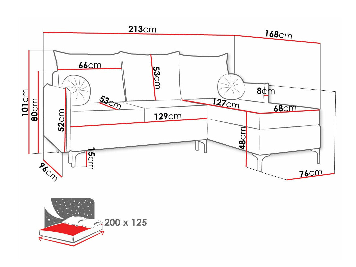 Ширина спальной зоны1250 мм