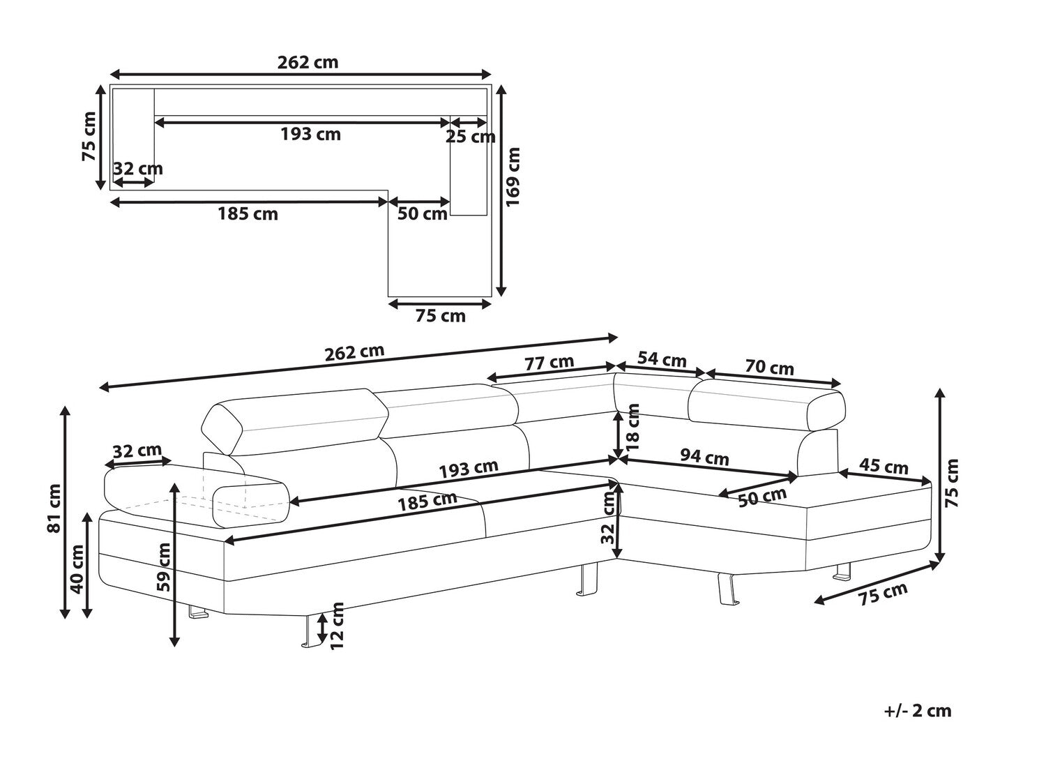 Вид углового диванаL-образный