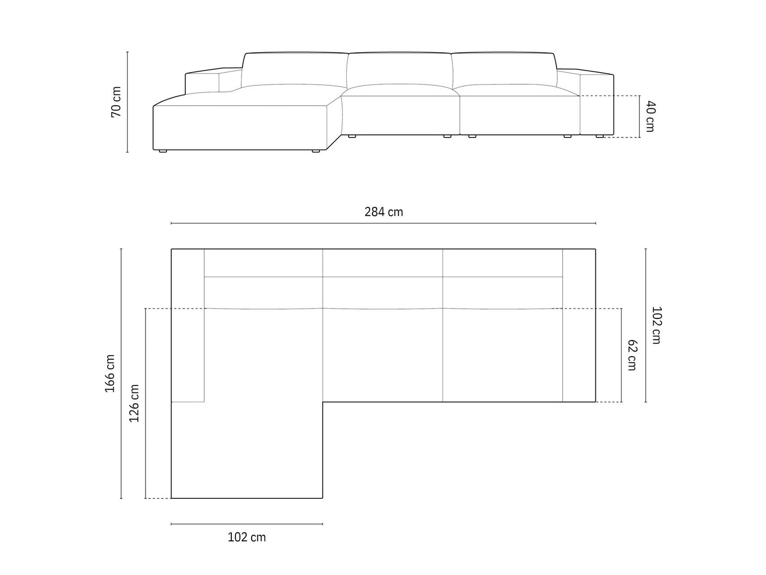 Вид углового диванаL-образный