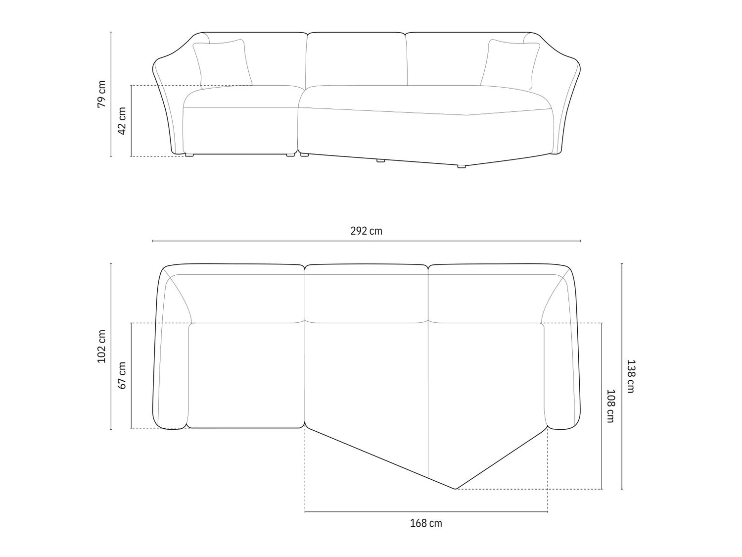 Вид углового диванаL-образный