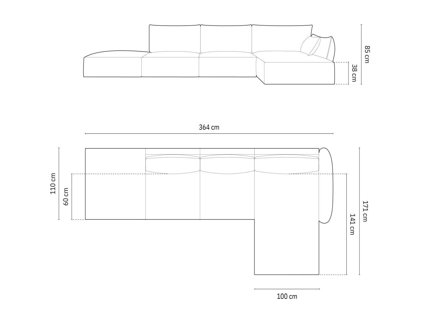 Вид углового диванаL-образный