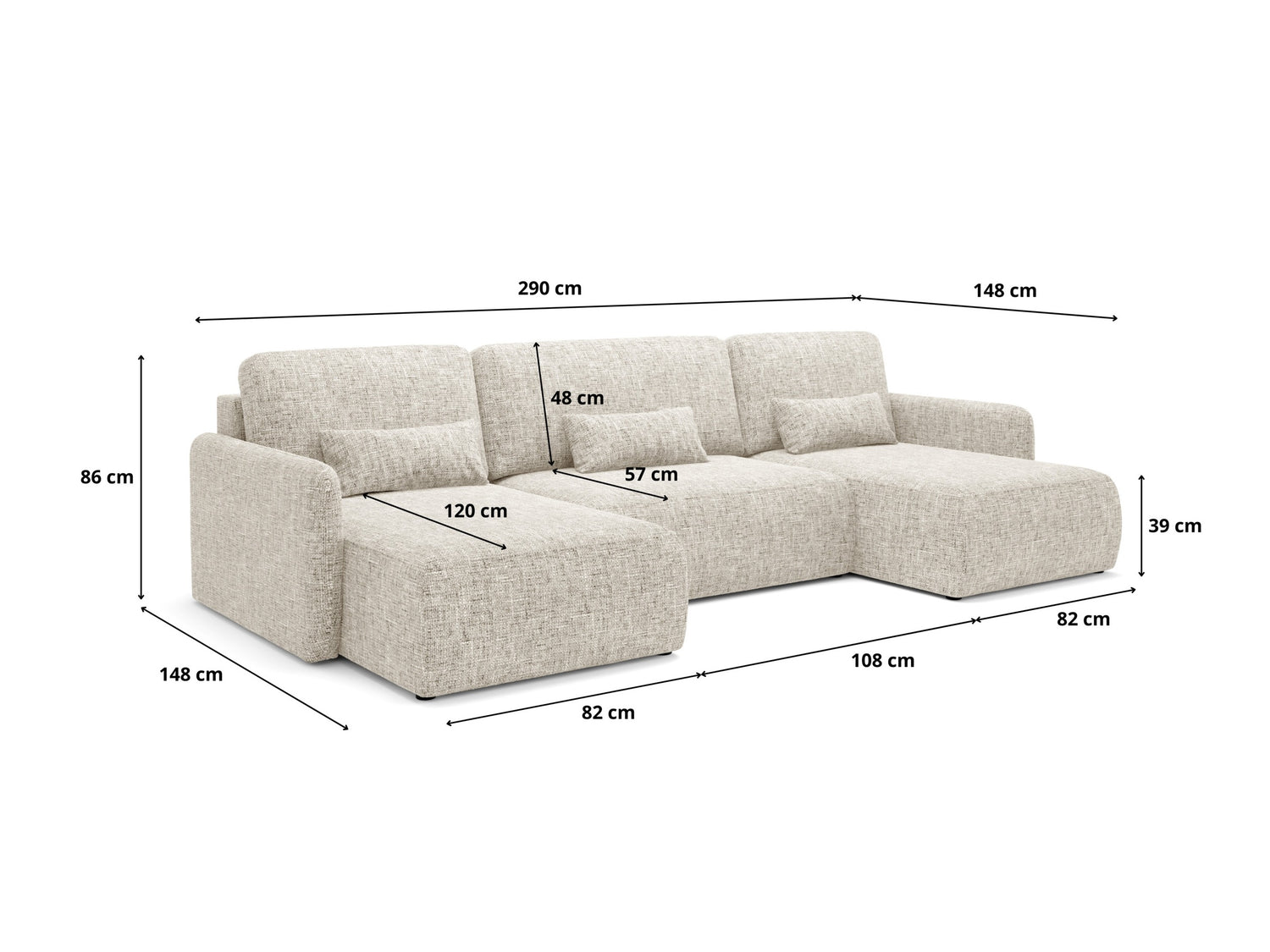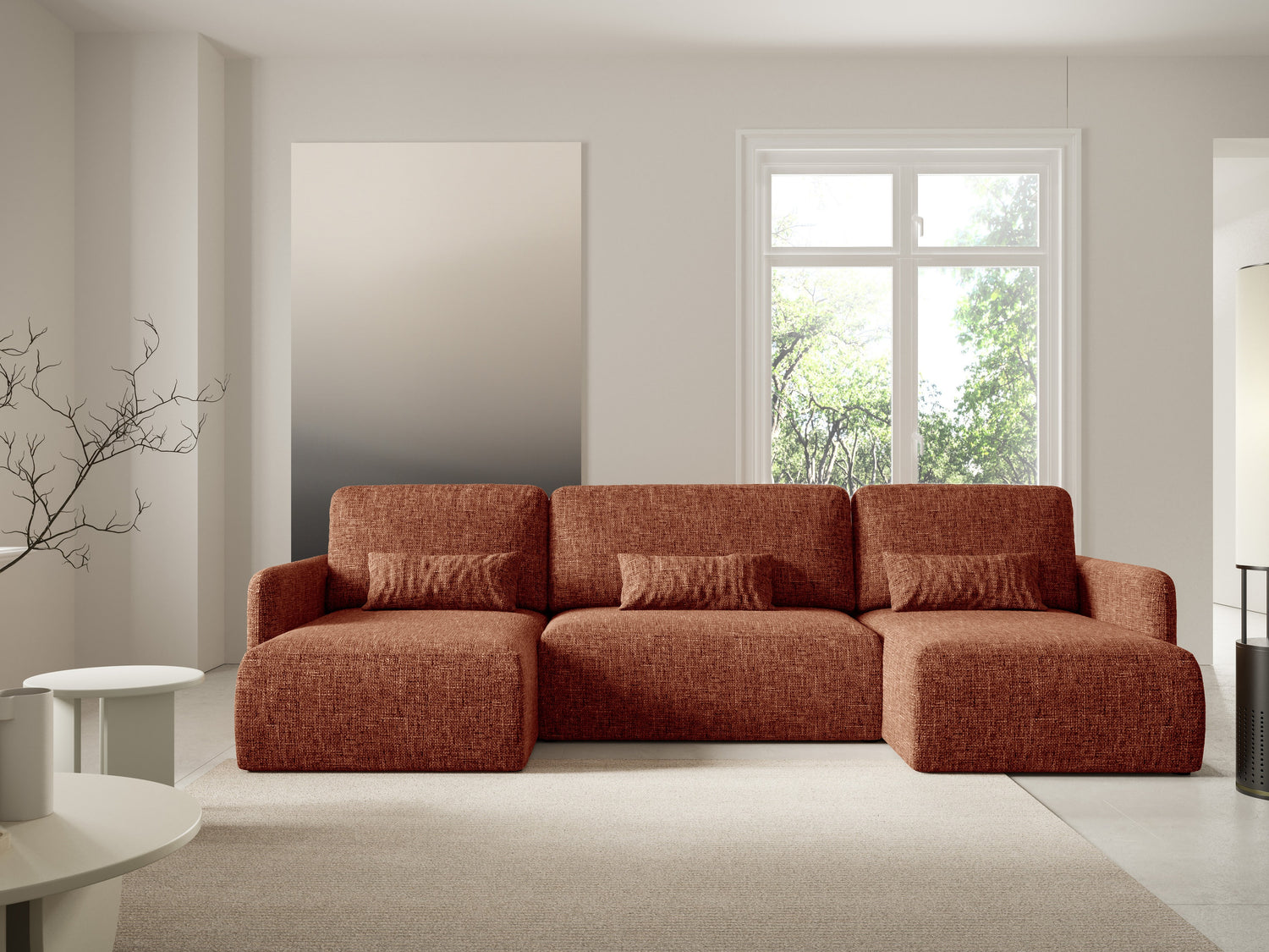 Ткань задней части мебели не отличается от ткани основной мебели. Вы можете разместить мебель с этой функцией в центре комнаты.