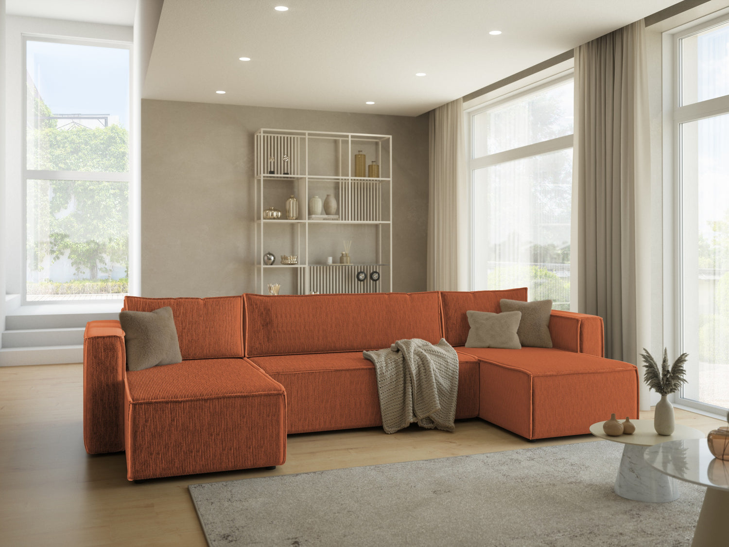 Ткань задней части мебели не отличается от ткани основной мебели. Вы можете разместить мебель с этой функцией в центре комнаты.