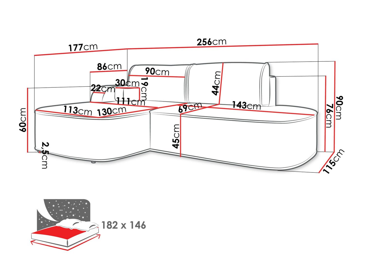 • Правосторонний угловой диван