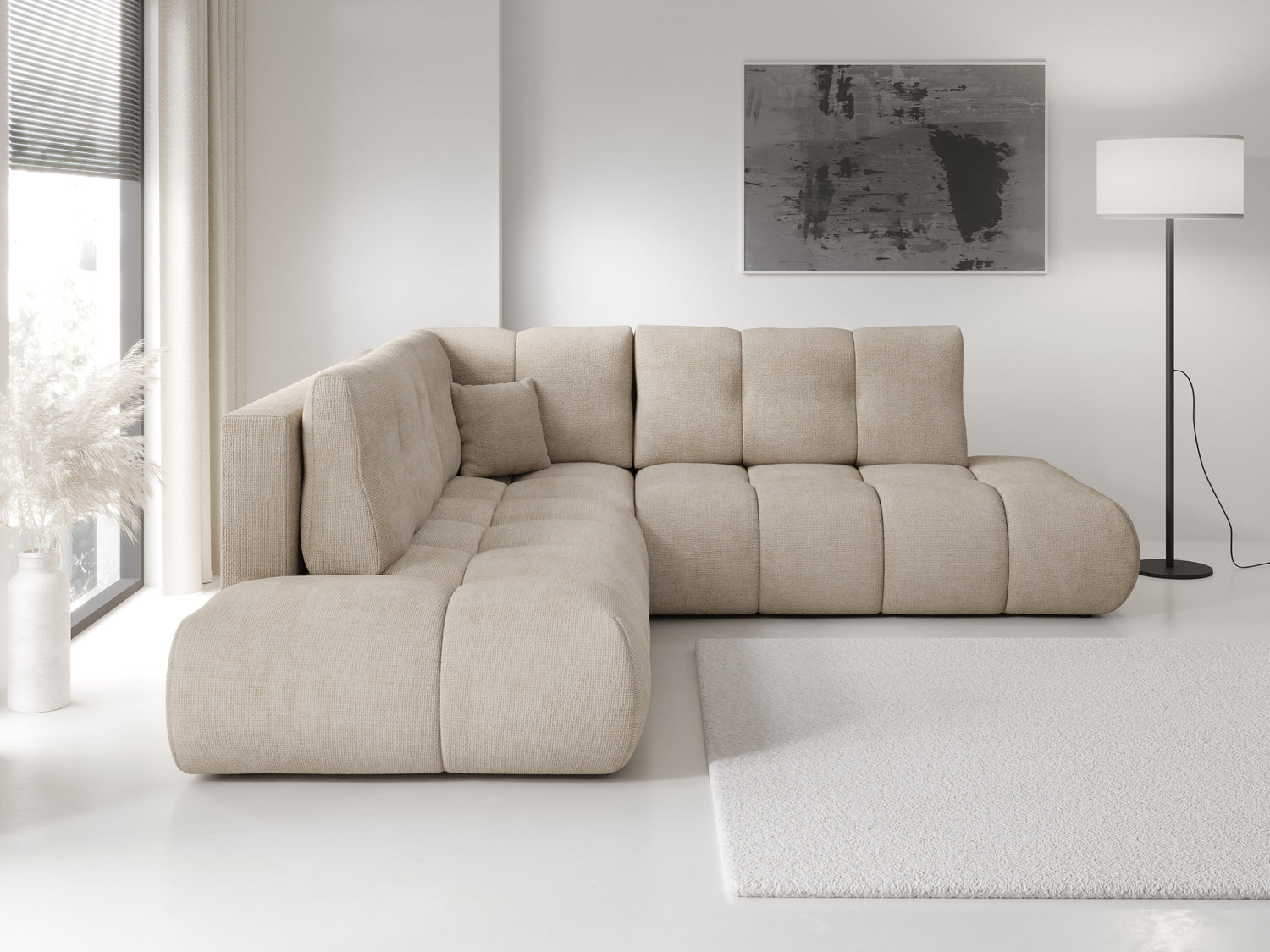 Ткань задней части мебели не отличается от ткани основной мебели. Вы можете разместить мебель с этой функцией в центре комнаты.
