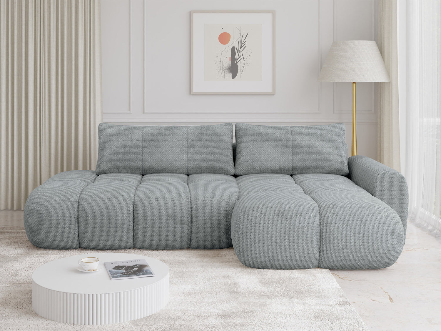 Ткань задней части мебели не отличается от ткани основной мебели. Вы можете разместить мебель с этой функцией в центре комнаты.