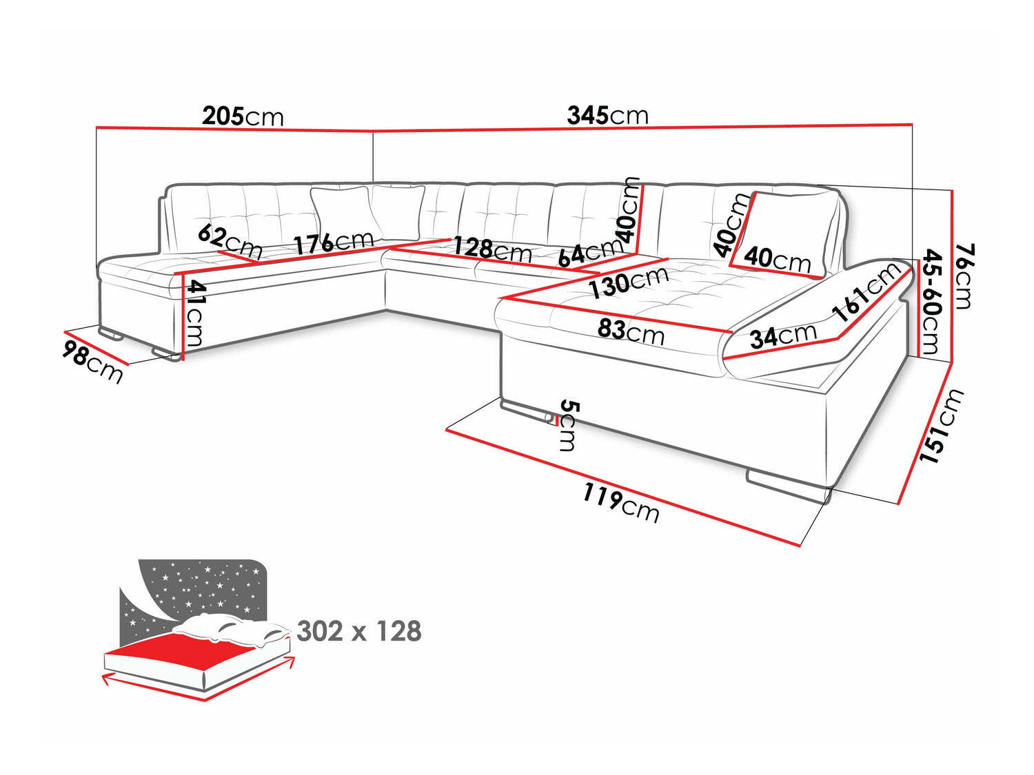 Ширина спальной зоны1280 мм
