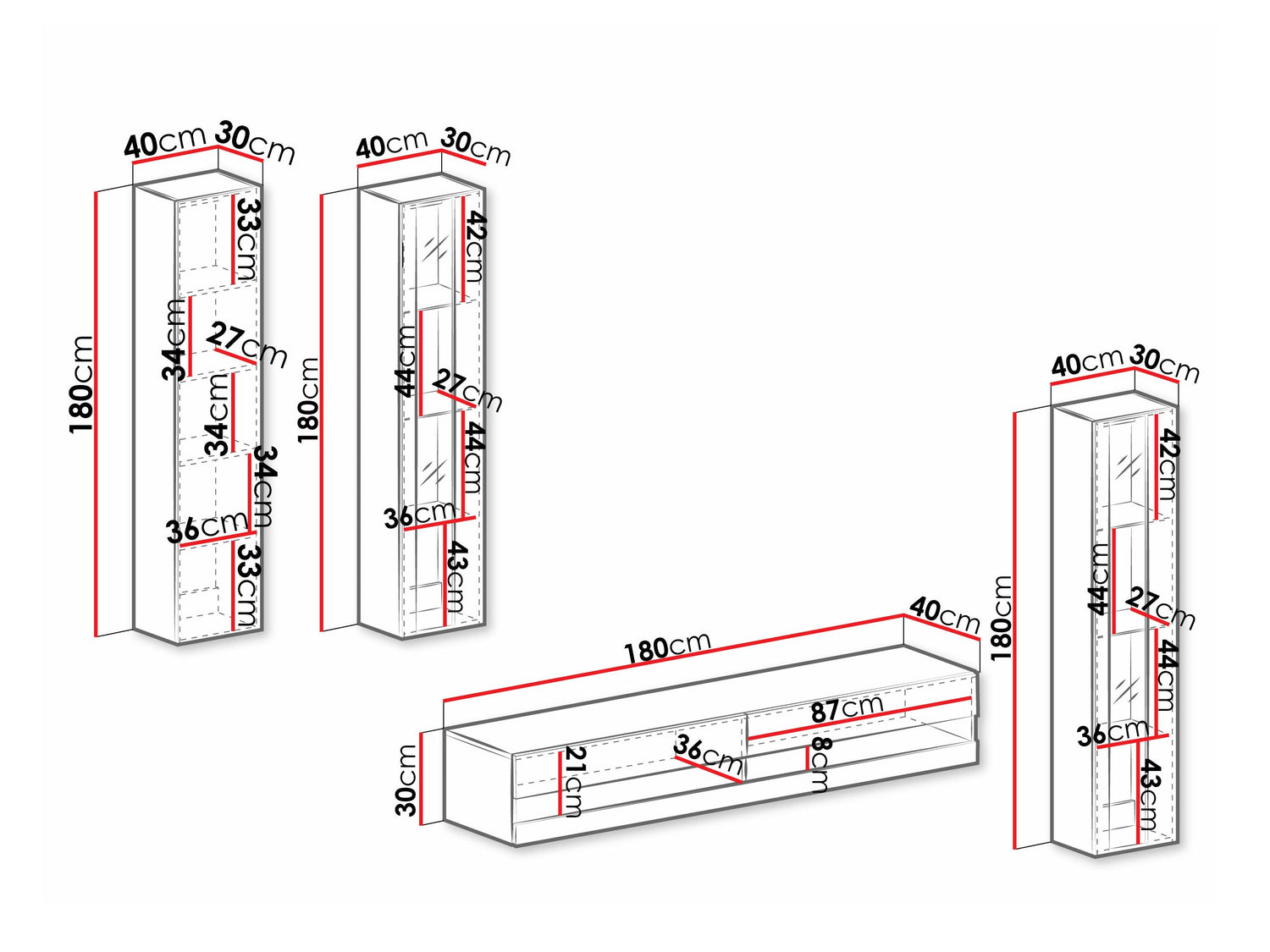 Размеры телевизионного стола300 x 1800 x 400 мм